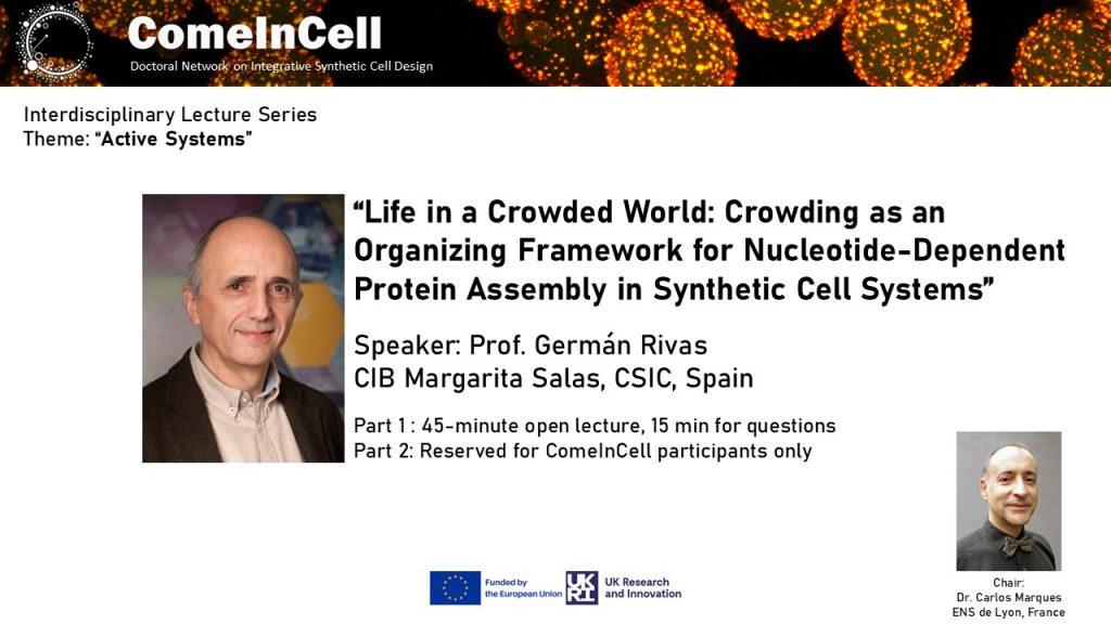 2026-03-02: “Life in a Crowded World: Crowding as an Organizing Framework for Nucleotide-Dependent Protein Assembly in Synthetic Cell Systems” lecture by Germán Rivas